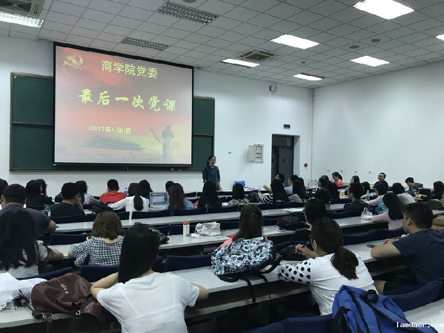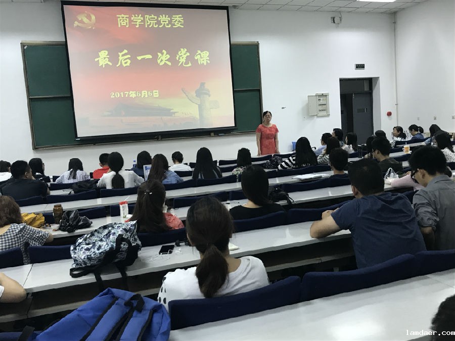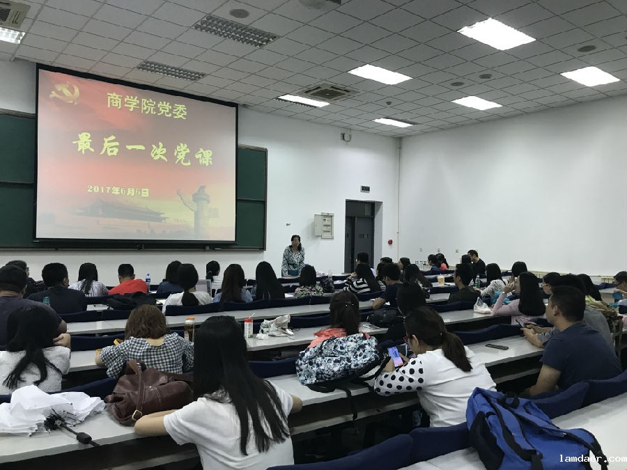 (通讯员 王媛媛)为进一步推动“两学一做”学习教育的常态化制度化,推进党员管理工作的制度化、规范化,引导其在离校后继续发挥党员先锋模范作用,商学院党委和商学院党总支于6月6日在B502向商学院2017届毕业生党员上了最后一次党课。学院党委书记孙跃、副书记王坚、党委秘书陈红艳及毕业班辅导员木琳、张玉川出席,本硕博毕业生党员现场聆听了这次党课。