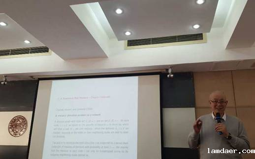 20日上午,孙捷教授为大家介绍了几种经典的风险评估模型,用基础的数学分析知识和实例使抽象的数学公式容易理解。21日上午,孙捷教授介绍了鲁棒优化的研究前沿,详细讲解了引入随机变量的CVaR风险模型的近似求解过程。22日上午,孙捷教授介绍了2017年来学者最新的研究成果,分享了博弈论前沿思想,并讲解了自己的最新研究成果,通过逐步对冲算法解决加入风险随机变量的两阶段二次博弈。