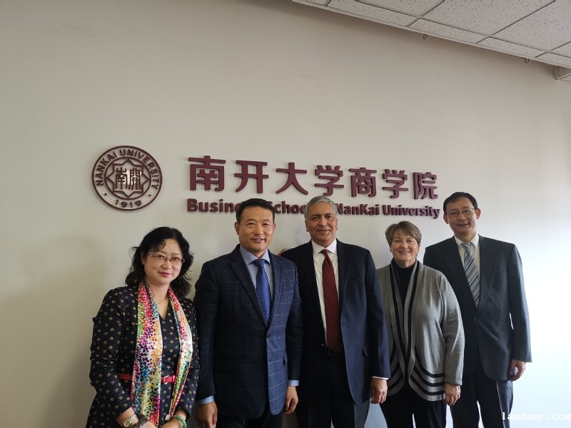 On October 31, Ajay Vinze, Dean of the School of Business, University of Missouri Columbia and Ms Gay Albright, Director of International Exchange Office, Dr. Zou Shaoming, chair professor of Nankai University paid a visit to Nankai Business School (NBS). Meeting with the guests were Bai Changhong, Dean of NBS, Li Yuelin, Vice Dean of NBS, and Prof. Xu Hui. The two sides held amicable talks in terms of bilateral cooperation and exchanges.