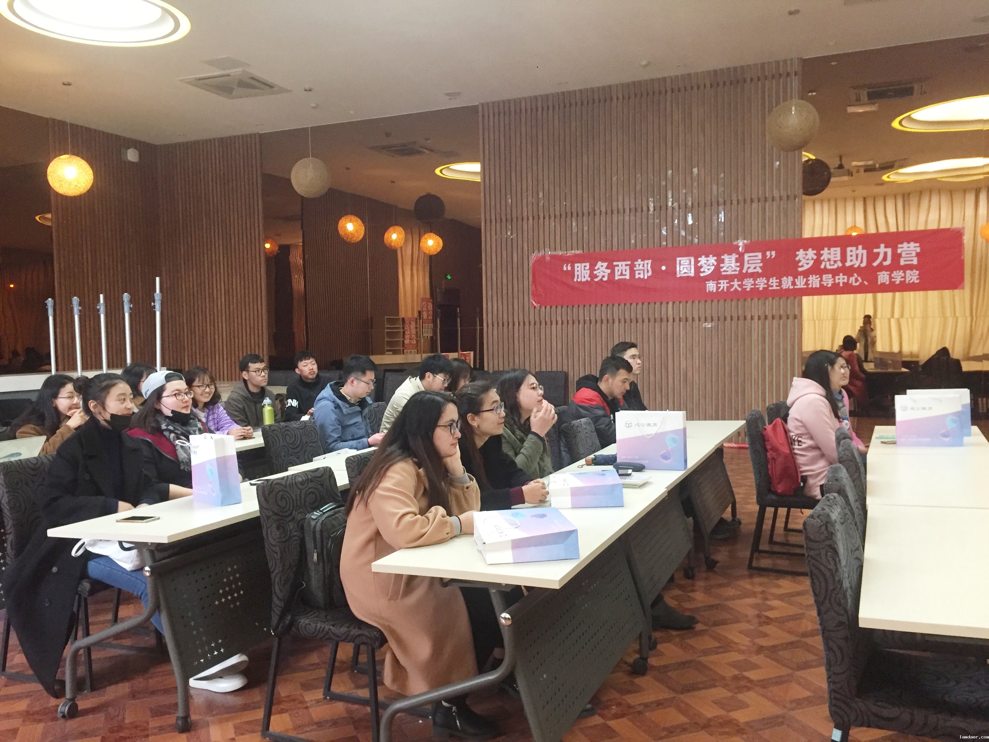 (通讯员 周翠翠 马文钰)4月9日,南开大学学生就业指导中心主办、商学院承办的“服务西部·圆梦基层”梦想助力营活动顺利举办,来自商学院、旅游与服务学院等20余位学生参加了此次活动。南开大学优秀校友侯珍珍为现场同学提供了公务员及选调生考试的政策解读,为报考西部地区公务员及选调生的少数民族学生提供精准指导。