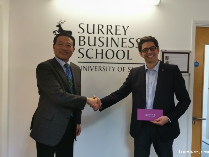4月19日,代表团访问了萨里大学商学院,与该院负责国际交流副院长Marco教授就商讨开展硕士联合培养及MBA项目海外学位及学习模块初步达成一致,双方表示将进一步深入讨论,争取早日落地实施。