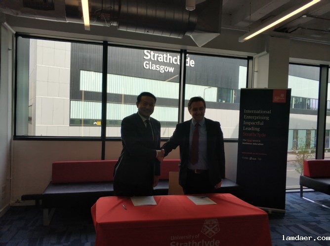 4月18日,代表团访问了斯特克莱德大学商学院。该院负责国际事务副院长Ian Wooton对商学院代表团的访问表示欢迎,表示两院合作项目在双方共同努力进展很快,第一批学生将于2019年9月来英攻读硕士学位。白长虹院长对斯特克莱德商学院的热情接待表示感谢,也希望借此次来访,能够加深了解,拓宽合作领域,加快合作步伐。访问期间,白长虹院长还与该校副校长兼商学院执行院长David Hillier教授签署了两院访学学生协议。