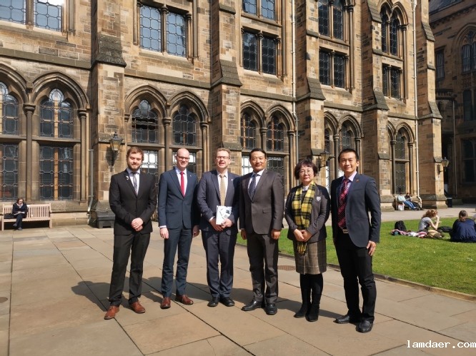 格拉斯哥大学建于1451年,是全球最为古老的十所大学之一。格拉斯哥大学已培养出7位诺贝尔奖获得者,2位英国首相和4位高等院校的创建者等众多法律、科学、商业等领域的领导精英,在欧洲乃至全球都享有极高声誉。被誉为经济学之父的亚当斯密曾就读于该校,并担任教授和校长。4月17日,代表团在访问格拉斯哥大学时,白长虹院长与该校人文学部副主任Richard Berry教授和亚当斯密商学院院长John Fich教授进行了亲切会谈,就开展硕士联合培养、教师访问、访问学生项目交换了意见。