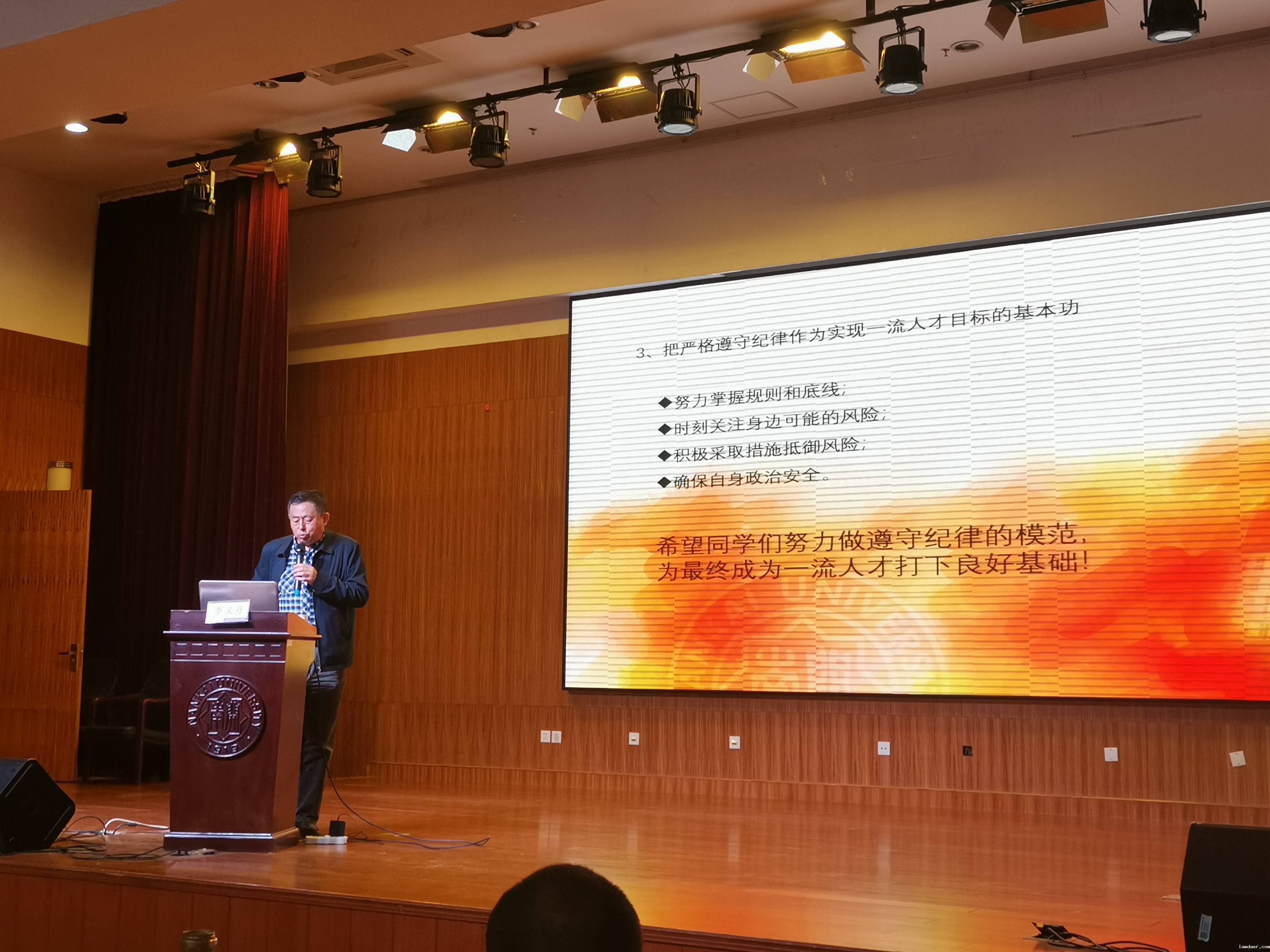 李义丹强调,新时代大学生正处于用铁的纪律管党治党时期,党的十九大把纪律建设纳入党的建设总体布局,更进一步对大学生的纪律素质提出高要求。通过丰富的案例分析,可以看出新时代大学生纪律素质还存在一些问题。为此,李义丹为新时代大学生提高纪律素质提出三点建议:希望同学们志存高远,把一流人才作为努力方向;充分认识纪律素质对一流人才成长的重要作用;把严格遵守纪律作为实现一流人才目标的基本功。
