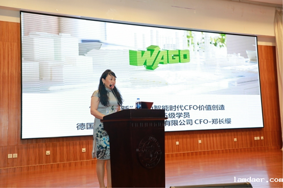 在校友交流环节,万可电子(天津)有限公司CFO郑长缨女士结合自身十几年工作经验,对智能时代CFO价值创造、大型外企的文化及战略运营在中国的构建和落地进行了新颖独到的阐释。