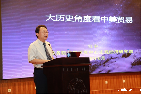这次活动还十分荣幸地邀请到国务院发展研究中心副研究员江宇先生,他就“大历史角度看中美贸易”发表演讲,通过纵览历史、深入浅出、鞭辟入里的分析,把近年来中美贸易战和带来的世界经济局势变化生动呈现出来,在场师生和校友凝神聆听,无不为他深刻的见解折服。