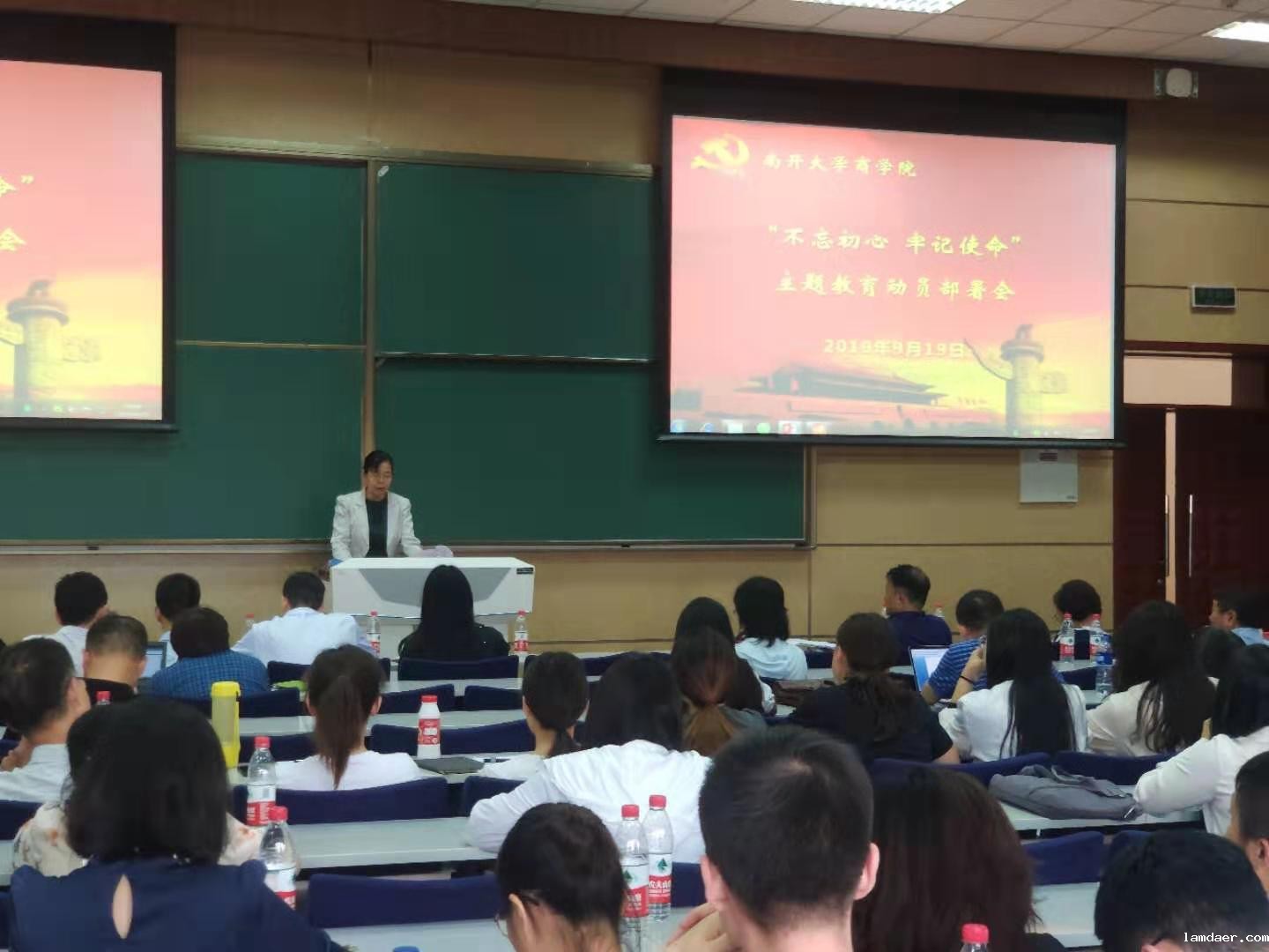 孙跃指出,今年531日,党中央召开“不忘初心、牢记使命”主题教育工作会议,习近平总书记发表重要讲话,深刻阐明了开展主题教育的重大意义、目标要求和重点措施,为深入开展主题教育提供了根本遵循。97日,中央召开“不忘初心、牢记使命”主题教育第一批总结暨第二批部署会议,对第二批主题教育提出明确要求。912日南开大学召开“不忘初心、牢记使命”主题教育动员部署会。今天商学院召开主题教育动员部署会,每位党员干部一定要以高度的政治责任感和使命感,坚决落实党中央部署要求,把各项工作做实做细做好,确保我院主题教育高质量开展。