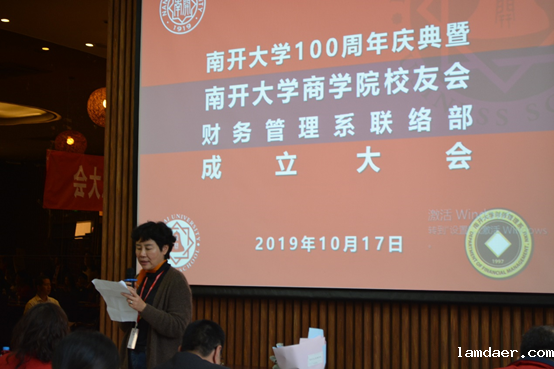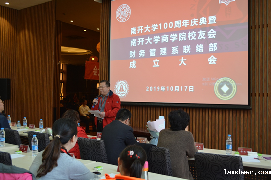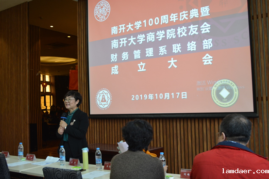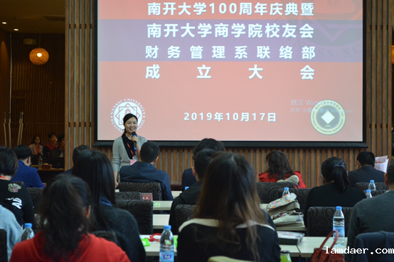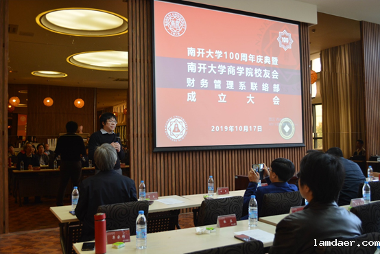 (通讯员 周之祺20191017日中午,适逢南开大学100周年华诞,财务管理系在师生和校友共同努力下,在商学院A301正式成立南开大学商学院校友会财务管理系联络部。商学院副院长张继勋、财务管理系系主任李莉、首届系主任王全喜、嘉宾代表刘福艳(天津市爱默生电气有限公司)、已毕业本科生代表钟杵(2002级财管班团支书)、已毕业研究生代表郭鑫(高维资本创始人)、已毕业博士生代表穆瑞田(华北理工大学教授,启奥科技董事,蟠龙工艺董事长)以及90余名毕业生校友,代表着建系以来财务管理系培养的各位本硕博毕业生,从全国各地赶来参加校友会成立仪式。