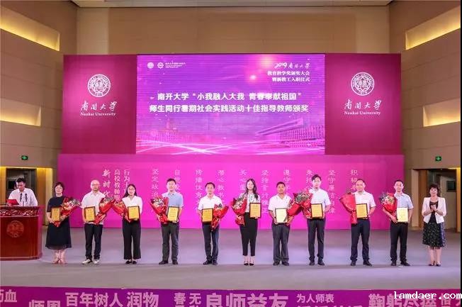 9月10日,南开大学在八里台校区举行2019年教育教学奖励大会。商学院信息资源管理系青年教师樊振佳获评南开大学“小我融入大我 青春奉献祖国”师生同行暑期社会实践十佳指导教师。他连续三年带领师生开展脱贫攻坚与乡村振兴相关专题调研,践行“知中国,服务中国”的南开情怀和社会担当。