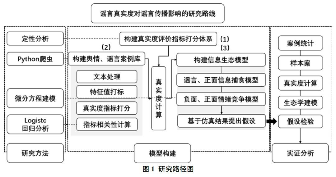 本文着重研究谣言真实度的界定、计算与影响。研究路线如图1所示: