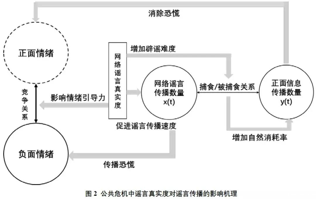 最后,谣言真实度会影响甚至引导公众情绪,尤其是谣言带来的不确定感在传播恐慌方面危害巨大。辟谣就是通过消除未知来控制恐慌传播,辟谣的情绪引导力与开始辟谣的时间和引导力度有关,但是公众在广泛传播的谣言中因沉默的螺旋更愿意相信自认为“真”的谣言,因此谣言真实度会影响辟谣的情绪引导力度。