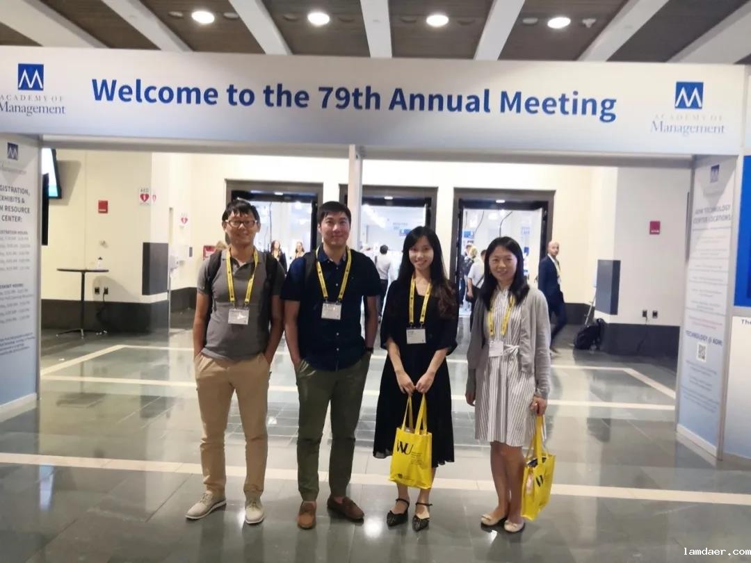 图3 营员黄佳茜(左起第3)论文被管理学顶级会议AOM年会接收并到美国波士顿做演讲