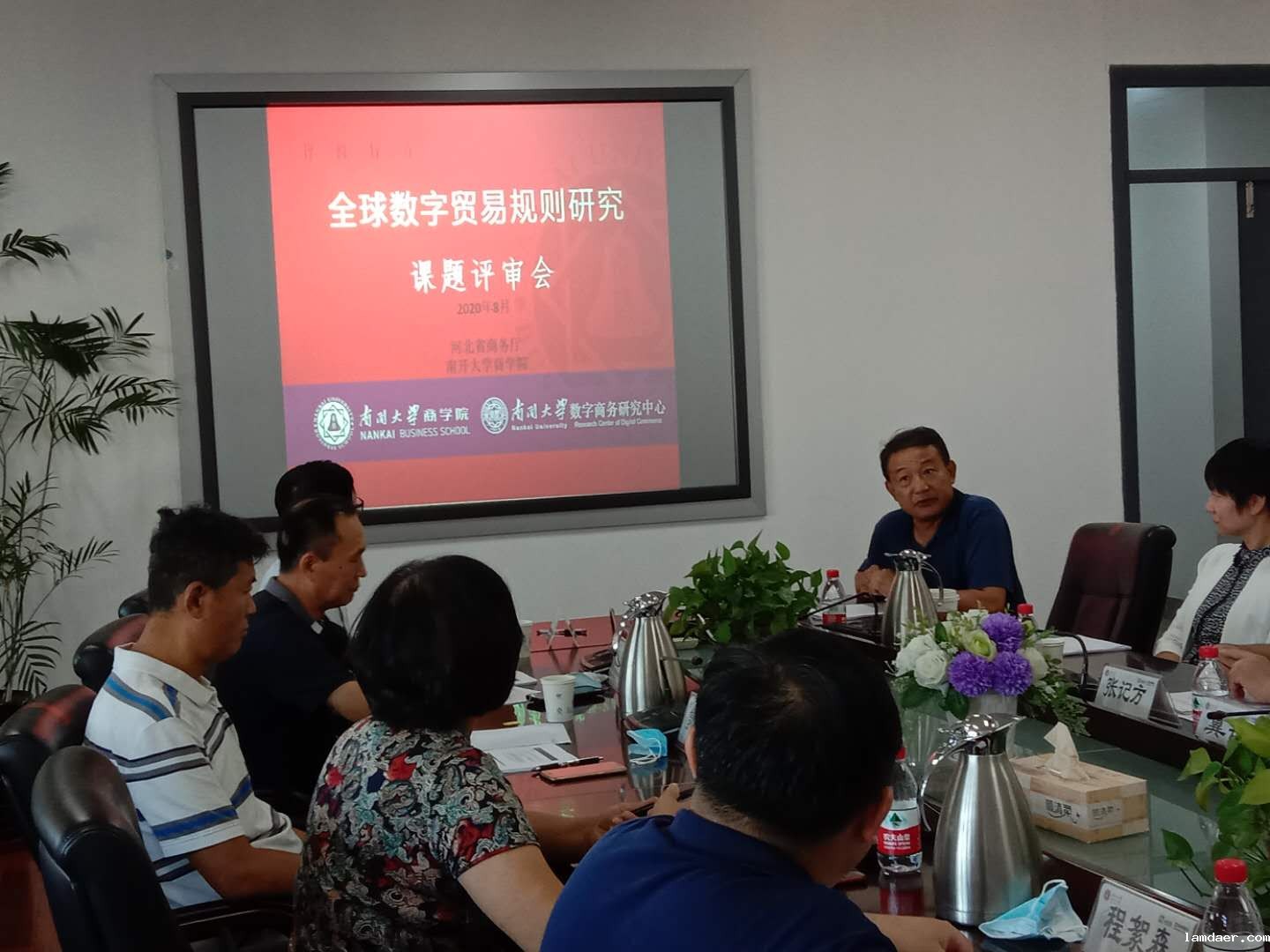 2020年8月21日,河北省商务厅与南开大学在南开大学商学院818会议室召开了“数字贸易规则与标准课题研究”项目评审会,此次课题研究报告由南开大学商学院数字商务研究中心主任李凯教授及其团队完成。评审会邀请了来自天津大学、中国人民大学、天津社会科学院、天津工业大学、中国工商银行总行、阿里巴巴集团等单位领导和专家6人,南开大学商学院院长白长虹教授出席会议并致辞,河北省商务厅相关领导负责人听取了课题研究成果汇报,评审会专家就课题成果进行了认真评审。