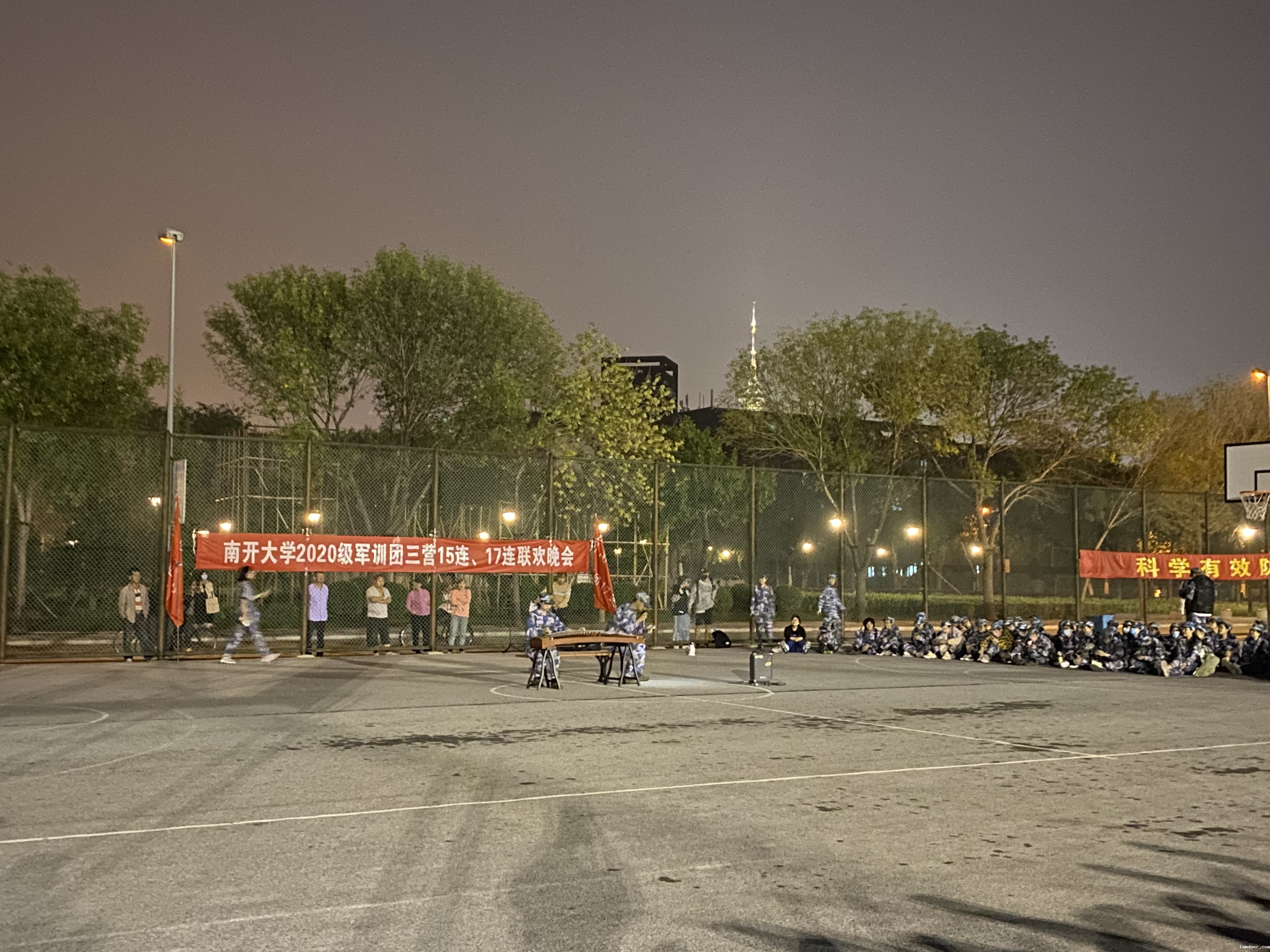 (通讯员 刘美萱 张好妍)9月24日晚,南开大学2020级军训团15连、17连联欢晚会在西区训练场举行。同学们在艰苦的军训之余精心准备,献上了一场视听盛宴:新疆少年穆拉提·热合曼精彩的街舞表演点燃全场、副指导员刘美萱倾情献唱《稻香》引起全场大合唱、教官深情演唱《年少有为》、古筝演奏《东风破》、舞蹈串烧、唱跳表演……观众们用手机电筒应援支持表演同学,表演同学们摩拳擦掌、各展身手。