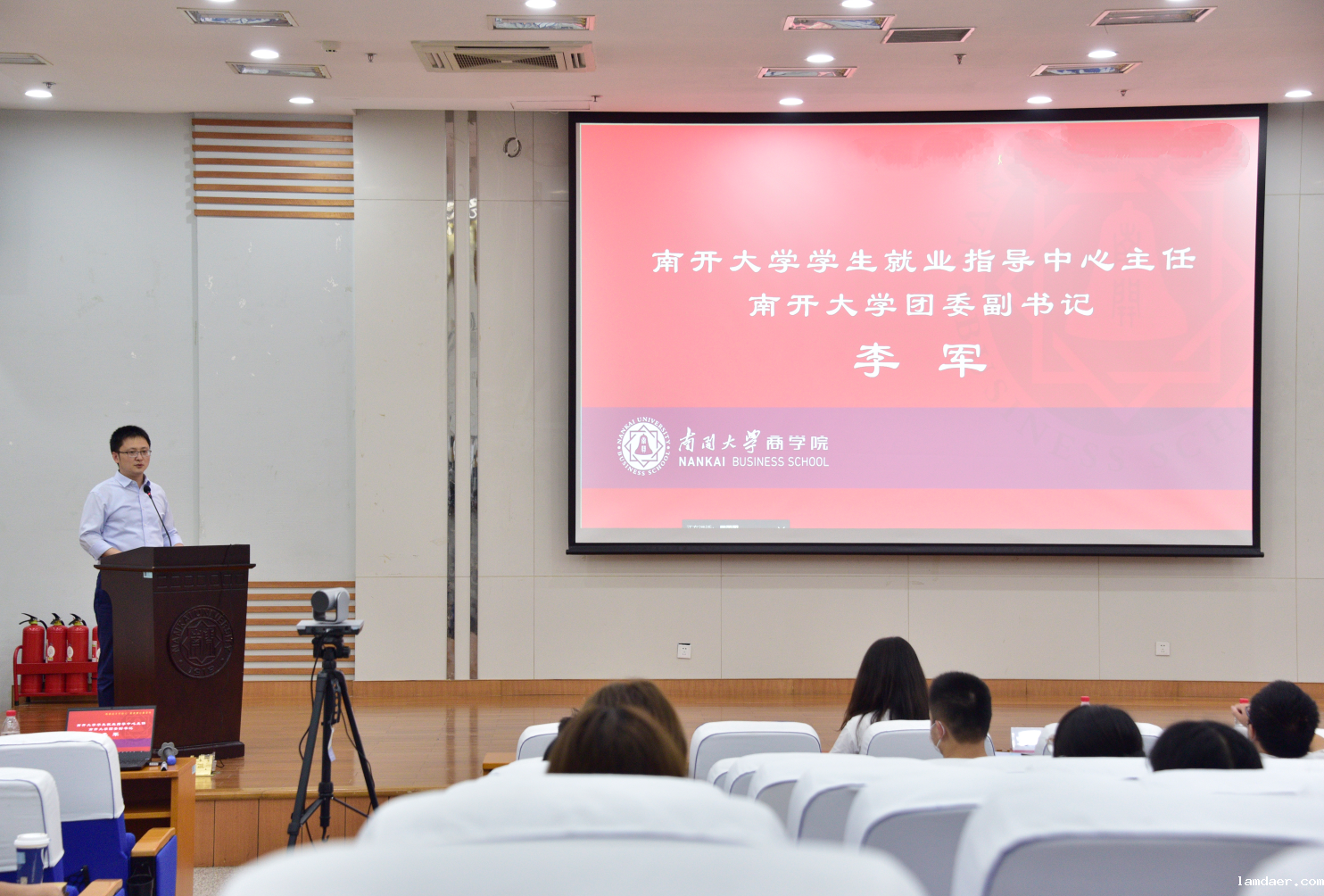 南开大学学生就业指导中心主任、团委副书记李军老师在推动会现场为同学们进行了国家就业政策讲解和就业方向指导,分别从国家层面、学校层面、个人层面进行就业前景解析,逐步深入挖掘就业重难点,分析考研、就业、出国三种选择的利弊。提倡将个人规划与国家政策形势相结合,早做准备,找准定位,保持开放心态。