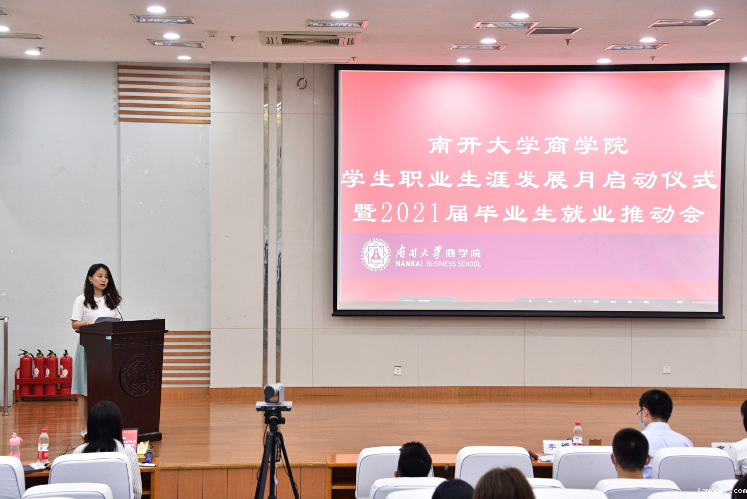 (通讯员 周翠翠,胡谨然)9月25日下午,南开大学商学院“学生职业生涯发展月”启动仪式暨2021届毕业生就业推动会在商学院小报告厅如期举行,会议由南开大学商学院党委副书记、副院长李娜主持。会议采用线下结合线上直播的形式开展,共计200余名学生参加。