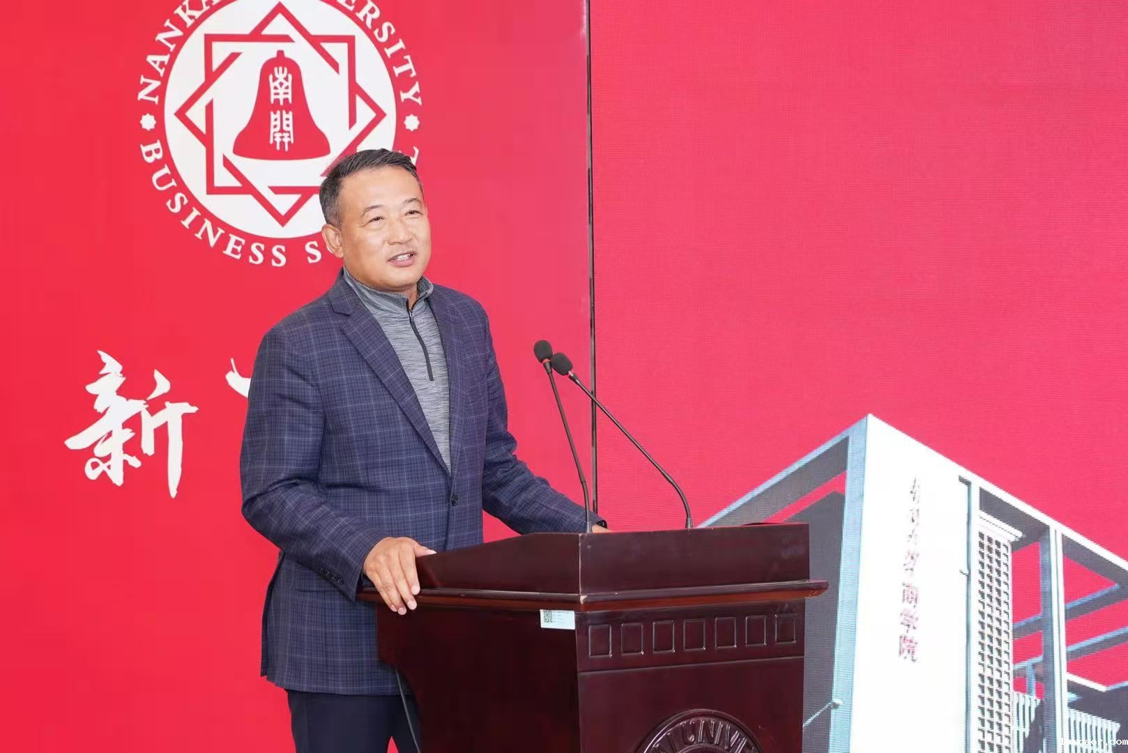 EXED在学学员、三意集团董事长胥德云先生代表老学员发言。胥德云先生讲述了自己公司的发展历程,表示拥有更加开放、包容、气象万千的格局与眼界,才是经商的要义。感谢南开大学商学院老师们的教导,作为南开的一份子,要为南开新百年再添辉煌。