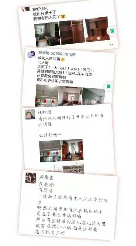 刘曙光在搬迁完成后表示:“从15宿到21斋,宿舍整体空间变得宽敞了,两人间,从原来的“初及狭,才通人”,到现在的“豁然开朗”,插座就在桌边,方便学习。窗外有河流和树,窗台上还可以摆上绿化,拉开窗帘,阳光从户外照射进来,整个房间通透明朗。新宿舍离主楼比较近,本学期专业课很多就是在主楼上的,离西南村也很近,生活学习都挺方便。虽然搬家的时候有一点疲劳,但看到收拾好的新宿舍,这几天的忙碌就值得啦!这么好的住宿环境,可要好好学习,努力进步!”