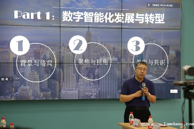 在接下来的嘉宾分享环节中,首先由商学院人力资源管理系副教授刘俊振做了“数字化、智能化发展与转型下的人力资源路径与落地”的主题演讲,从背景与格局、聚焦与视角和界定与共识三个角度进行破题,指出“万物互联”与疫情加速的双重背景推动了数字产业化与产业数字化转型,使得数字经济成为全球经济社会变革方向的重要引领和我国经济高质量发展的重要引擎。之后,立足微观角度,刘俊振副教授剖析了数字化、智能化与HR的关系:横向上,数字化的目的是经营和管理的智能化、智慧化和精准化,实现“员工信息数化-HR业务云化-人做事智化-工作任务颗粒化-业务驱动人的落地模式-由下而上数字HR(能力培养)驱动战略的引领模式”的实践链条;纵向上,解析了从组织数字化转型到人力资源数字化转型的落地、支持与驱动,实现HRM从信息化、软件化、标准化、流程化,到数字(数据)化、智能化、产品化的战略转型。