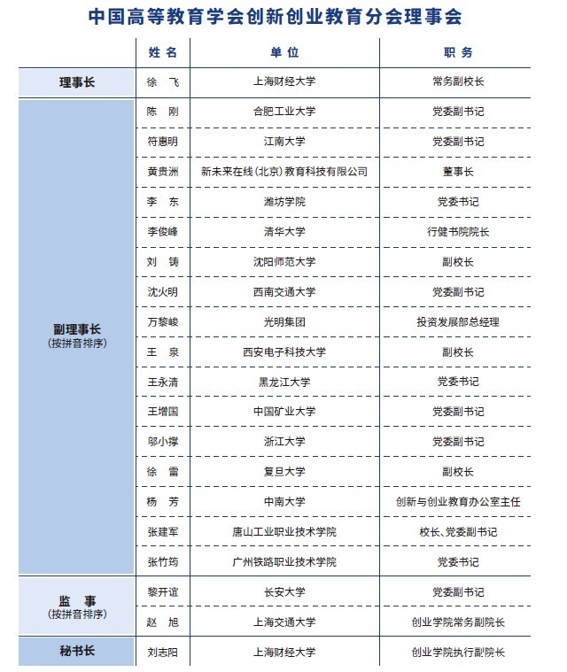 中国高等教育学会创新创业教育分会成立于2007年12月,是教育部指导下的全国性群众学术团体。创新创业教育分会成立以来,积极搭建学术交流平台,服务高等教育改革与创新,为全国高校创业教育工作提供指导与经验,为创业教育工作者提供指导与帮助,为大学生自主创业提供指导与服务,助推中国高校创新创业教育事业的发展。