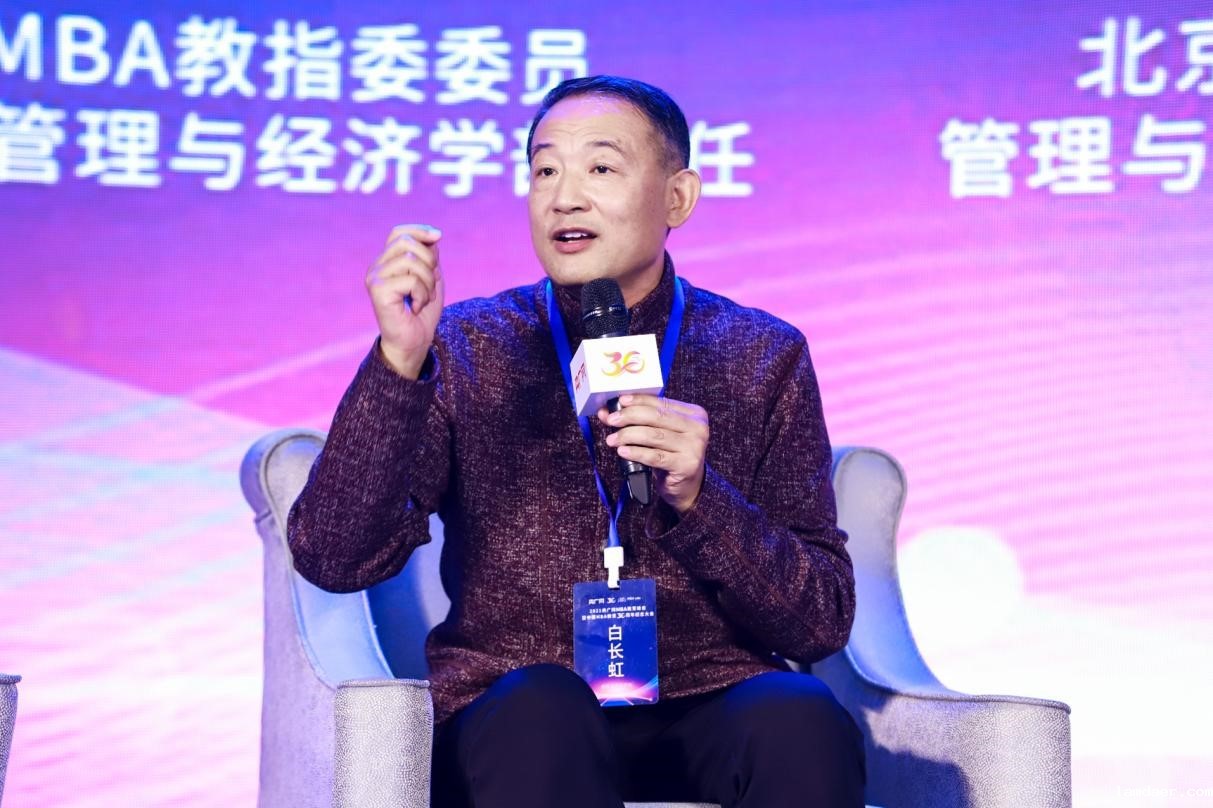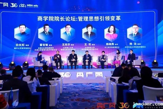 南开大学商学院院长白长虹教授在院长论坛上就中国MBA教育未来的创新之路与实践转型和南开大学商学院MBA教育的新探索做分享。他指出,未来商学教育核心任务和使命仍然是在企业家的成长和发展中,基于知识和理论,为他们带来启发和帮助。未来三十年,中国MBA教育面对中国和世界全新的变化,需要再识别有价值的管理问题,对企业家创新性解决管理难题深入调研、总结其实践逻辑和实践智慧,发展有效研究实践问题的新方法,提供简明、准确的理论知识传播方式,与学员与企业家共鸣共振,推进全社会的管理进步。