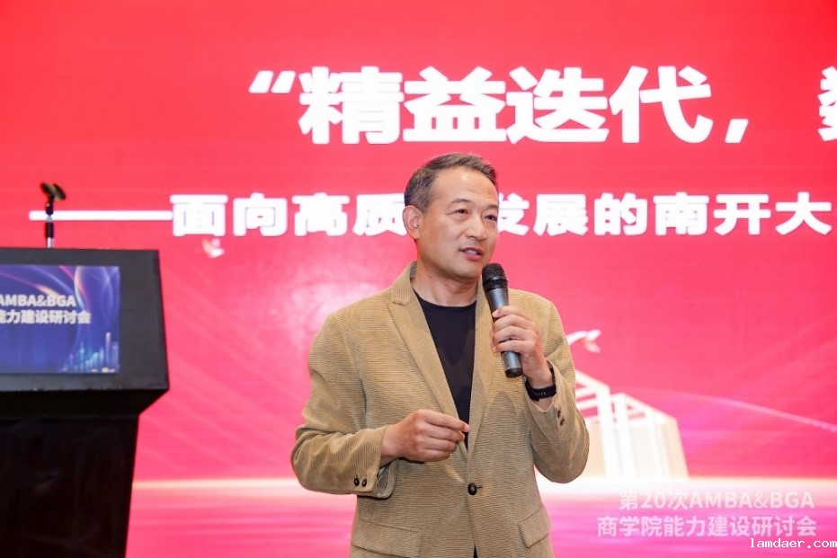 南开大学商学院院长白长虹教授、专业学位教学中心副主任梁峰副教授、专业学位教育中心主任陈琰博士受邀参加研讨会。白长虹院长在能力建设策略发言环节进行了《“精益迭代,数智融通”—面向高质量发展的南开大学MBA项目持续改进实践》主题分享,分享内容得到了与会嘉宾的热烈反响与深切认同。