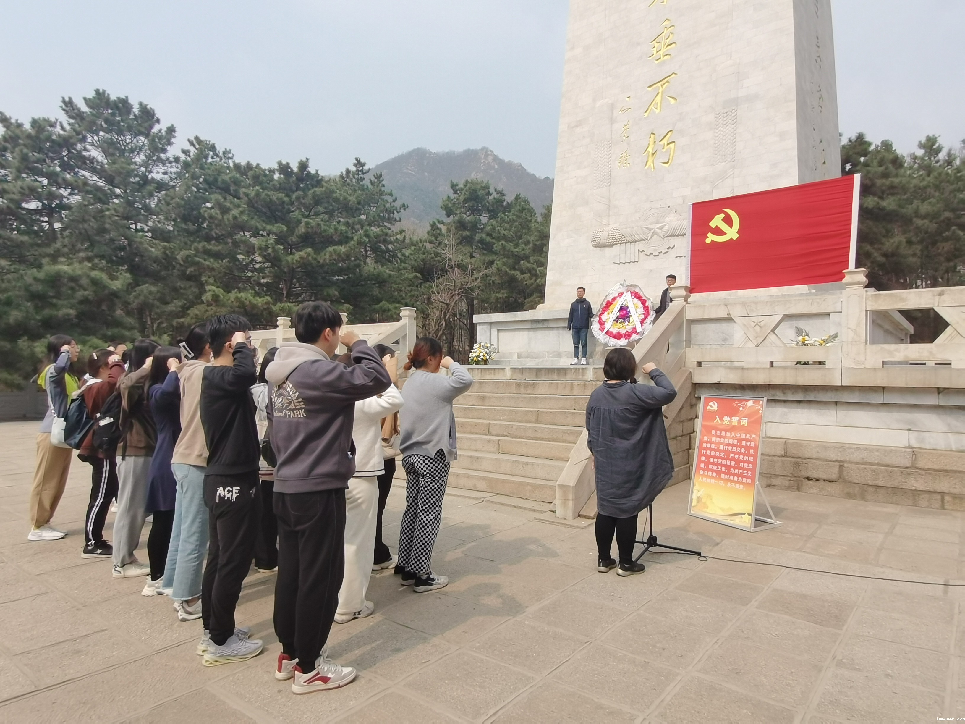 盘山烈士陵园安葬着抗日战争、解放战争、抗美援朝时期的老红军和八路军指战员,以及中华人民共和国成立后为保护国家和人民生命财产安全而牺牲的烈士。党员们首先来到烈士纪念碑举办祭扫仪式,全体肃立奏唱国歌,并向革命烈士默哀,表达缅怀之情。紧接着,学生代表向英雄敬献花篮,学工办主任胡颖欣仔细整理挽联,并带领同志们重温入党誓词。学生代表尼加提·麦麦提吐逊发言,号召青年党员要缅怀先烈,传承和弘扬伟大抗战精神,在新时代新征程中奋勇争先。随后,同志们缓步绕纪念碑一周,深情瞻仰烈士纪念碑,缅怀先烈、表达哀思。