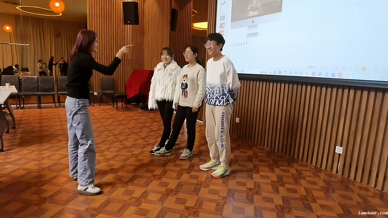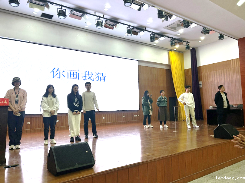 在商学院大报告厅,各班级开展富有趣味性的小游戏,如“你画我猜”“击鼓传花”等,通过团队协作能力,增强了班级凝聚力和学生的沟通技巧。