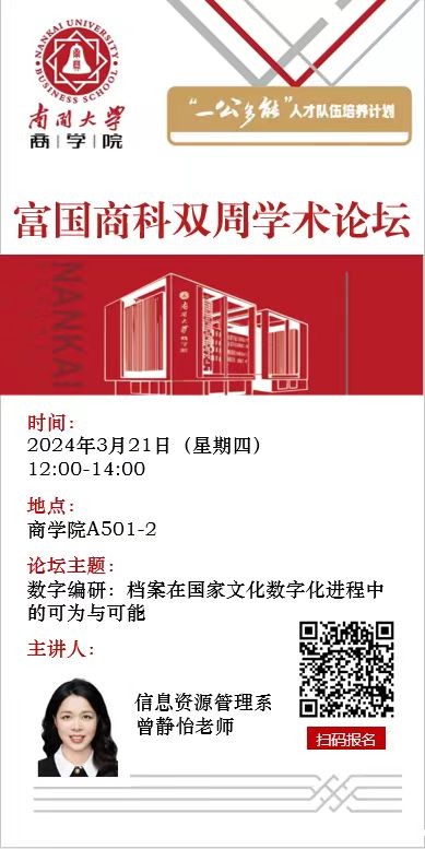 【富国商科双周学术论坛】数字编研:档案在国家文化数字化进程中的可为与可能
