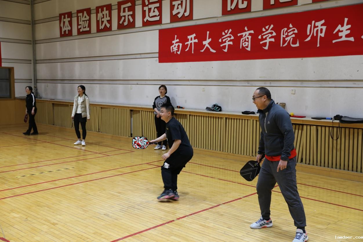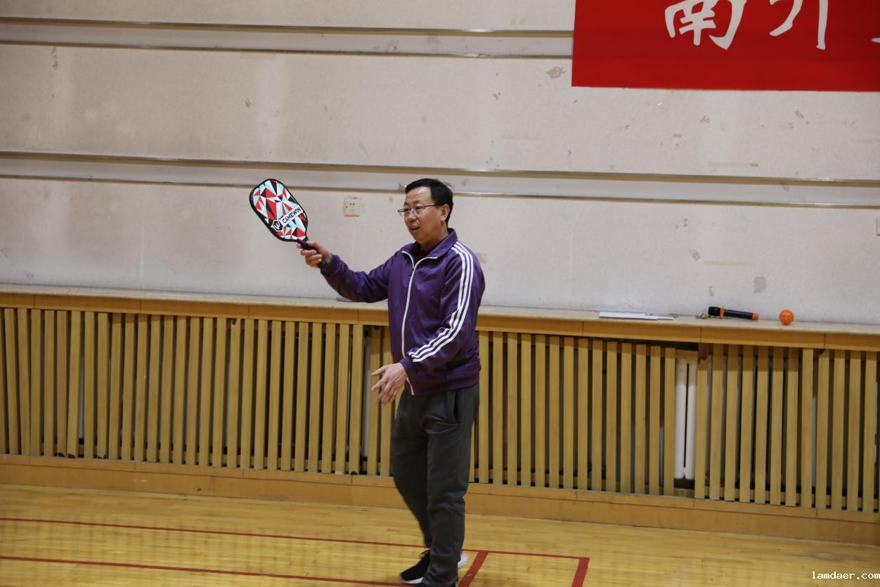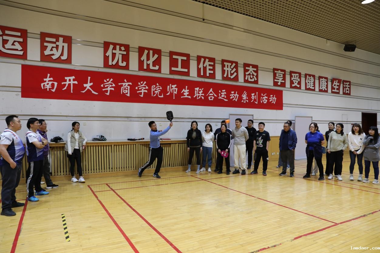(通讯员 张彤)挥拍,击球,触地,灵巧的匹克球越过隔网,在空中画出一道优美的弧线,为商学院师生联合系列活动的和美画卷中添上了精彩纷呈的一笔!3月20日中午,2024年商学院师生联合系列活动之二——匹克球培训活动于商学院多功能厅开展。本次活动由商学院教代会主席郝臣主持,南开大学体育部指导老师,天津市匹克球教练员,天津市首届匹克球大赛双打冠军、单打四强郭汶豪指导训练。