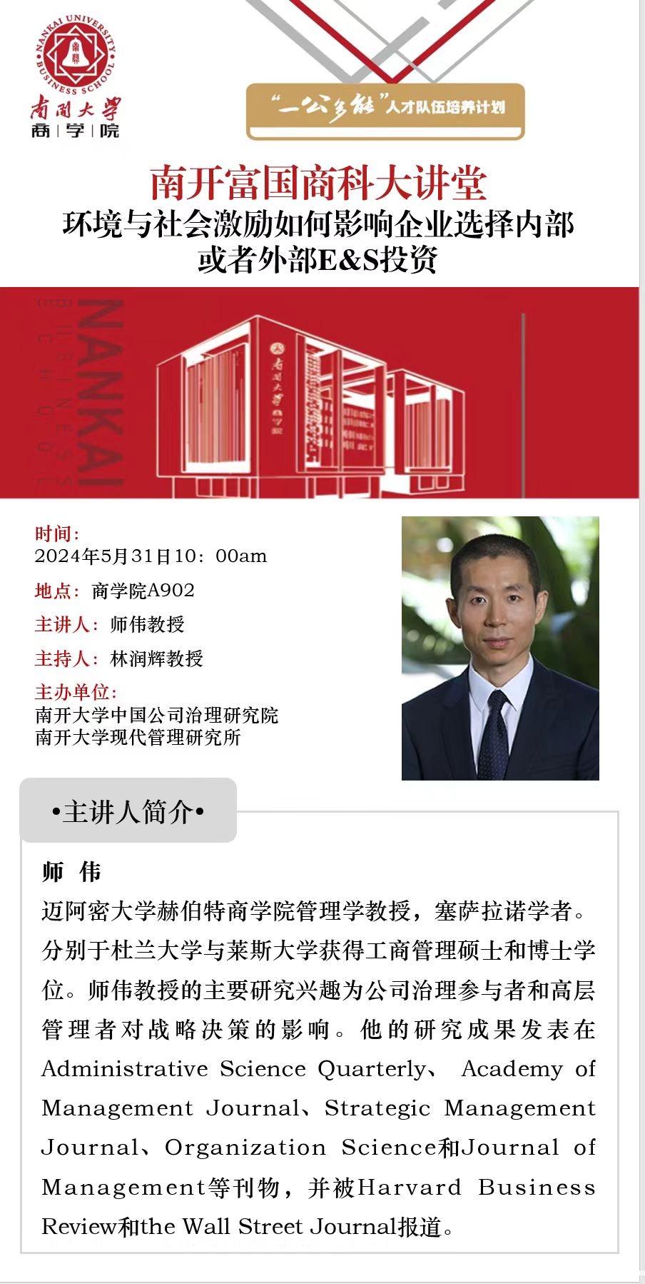 环境与社会激励如何影响企业选择内部或者外部E&S投资—师伟