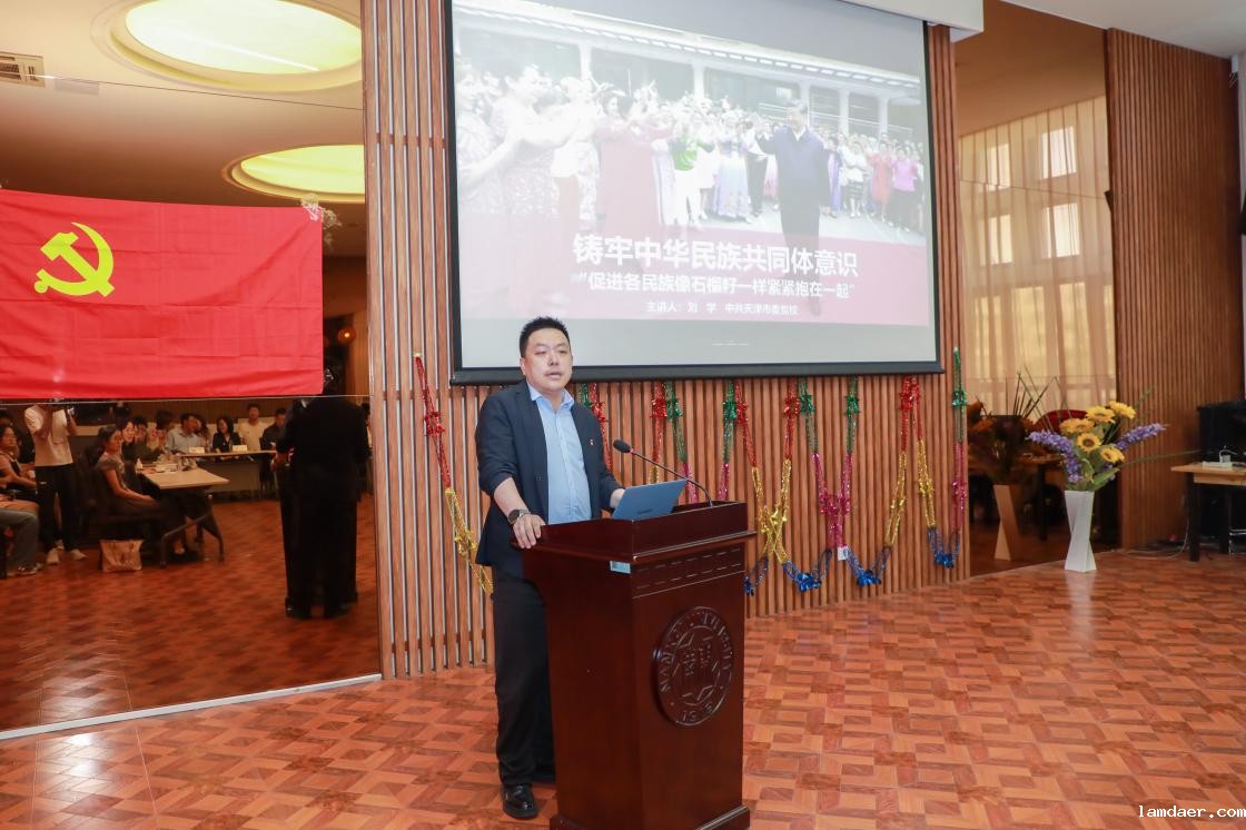 会上,天津市委党校副教授刘学作题为“铸牢中华民族共同体意识”的主题党课,他指出,铸牢中华民族共同体意识,是新时代我们党的民族工作的主线,也是全体中华儿女的共同责任。在当前多元文化交流交融的时代背景下,我们更需要坚守这一共同意识,以维护国家的统一和民族的团结。
