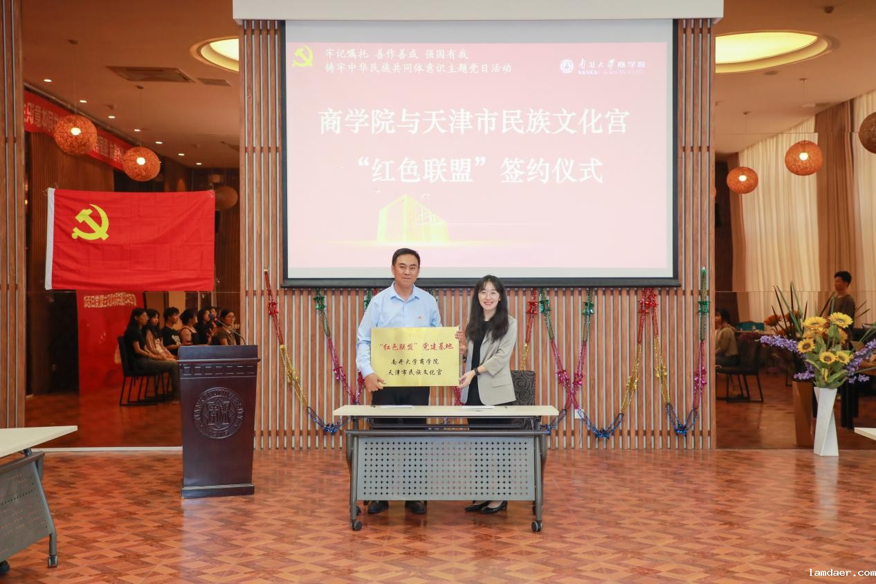 天津市民族文化宫与商学院签订了“红色联盟”协议,并进行了授牌仪式。
