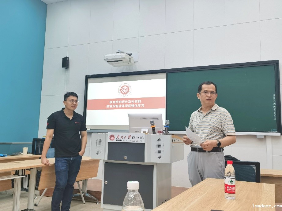 9月6日,南开大学商学院管理科学与工程系邀请到北京大学光华管理学院彭一杰副教授做客“南开富国商科大讲堂”,开展题为“Fast-Slow Dual-Agent Deep Reinforcement Learning for Dynamic Pricing and Replenishment”的学术讲座。本次讲座由南开大学商学院管理科学与工程系主任李勇建教授主持,管科系硕士生、博士生及部分青年教师参加。