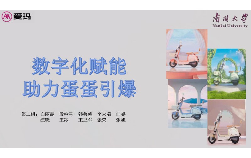 针对爱玛科技爆品推广中发现的问题,南开MBA学子们集思广益,总结了用户画像不准和推广渠道受阻的两类问题,并从数字技术的角度,聚焦于使用网络数据爬取、大数据模型等方式,来打造企业的数智化营销平台。通过对线上平台的数据抓取,企业能够总结和提炼客户信息数据,在数智化平台中接入精准营销板块,从公域和私域完成潜在客户的识别和转化。为解决推广渠道受阻问题,同学们提出了利用市场销售数据,建立企业的需求预测模型和调货系统,帮助经销商运营店铺,形成经销商和企业间的协同一致,实现价值共创。最后,同学们着眼于未来,总结了爱玛科技的数智化经营控制塔具有渠道数据实时掌握、营销政策落实监控、持续迭代模型和辅助经营决策的优势,未来还可以从加强数据管理思维、深化消费者数据应用、提升部门间协同和数据引领企业创新等方面持续进一步优化。