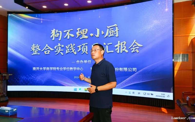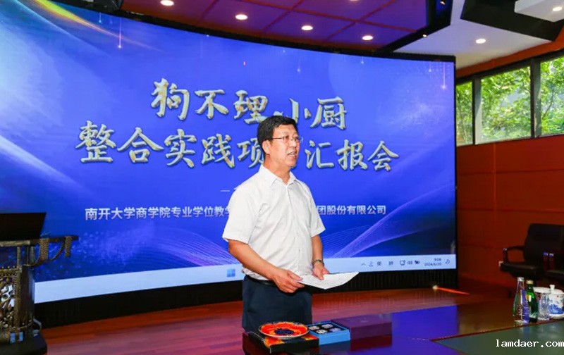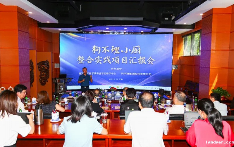 2024年6月20日上午,南开大学MBA整合实践项目(第四期)——“狗不理小厨商业模式创新”结项活动如期开启。本次活动由南开大学商学院专业学位教学中心携手狗不理集团股份有限公司(以下简称:狗不理集团)联合策划,旨在深入探讨开发狗不理小厨战略定位,设计狗不理小厨的商业模式和经营策略,帮助狗不理集团寻求新的增长点,推动老字号品牌与新业务双向赋能。南开大学商学院张金成教授,本期项目指导教师韩连胜老师、杨玉武老师,南开大学商学院专业学位教学中心副主任梁峰副教授、专业学位教学中心教学创新部主管吴薇老师、狗不理集团董事长张彦森先生、副总经理张彦明先生、党委书记于庆辉女士、副总经理耿静女士以及项目组的部分MBA学生共同参加了本次结项活动。