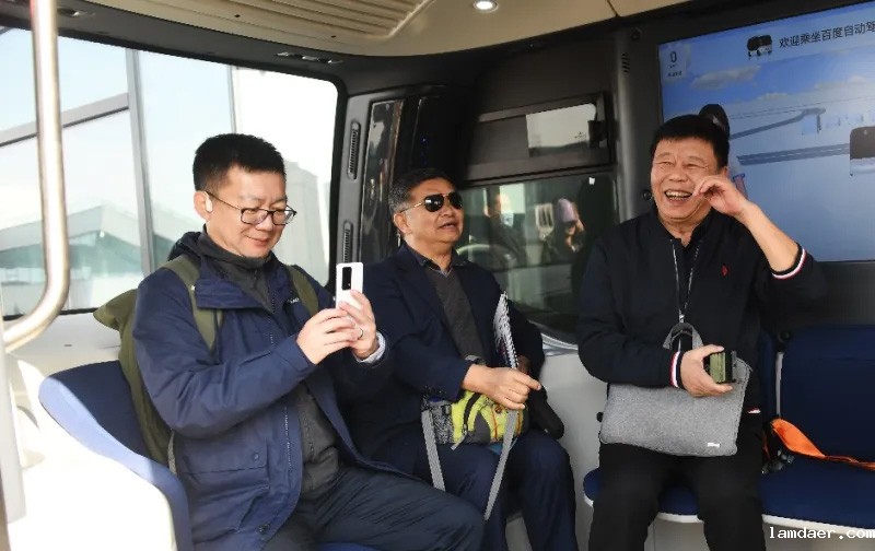 31号上午,老师和同学们首先来到V1汽车世界,对生态园的赛事活动和智能发展进行了解。在园区的大门口,阿波罗无人自动小巴正静静等待大家的到来。该辆无人驾驶汽车通过环布车身的传感器收集感知数据,由车载计算单元进行感知并数据分析,预测车辆、行人行为和意图,进而控制车辆正常行驶,保障整体行程的安全和高效。经过工作人员讲解,老师和同学们纷纷上车体验,通过与智能机器人——小度进行对话,实现了特定地点的前往和到达。