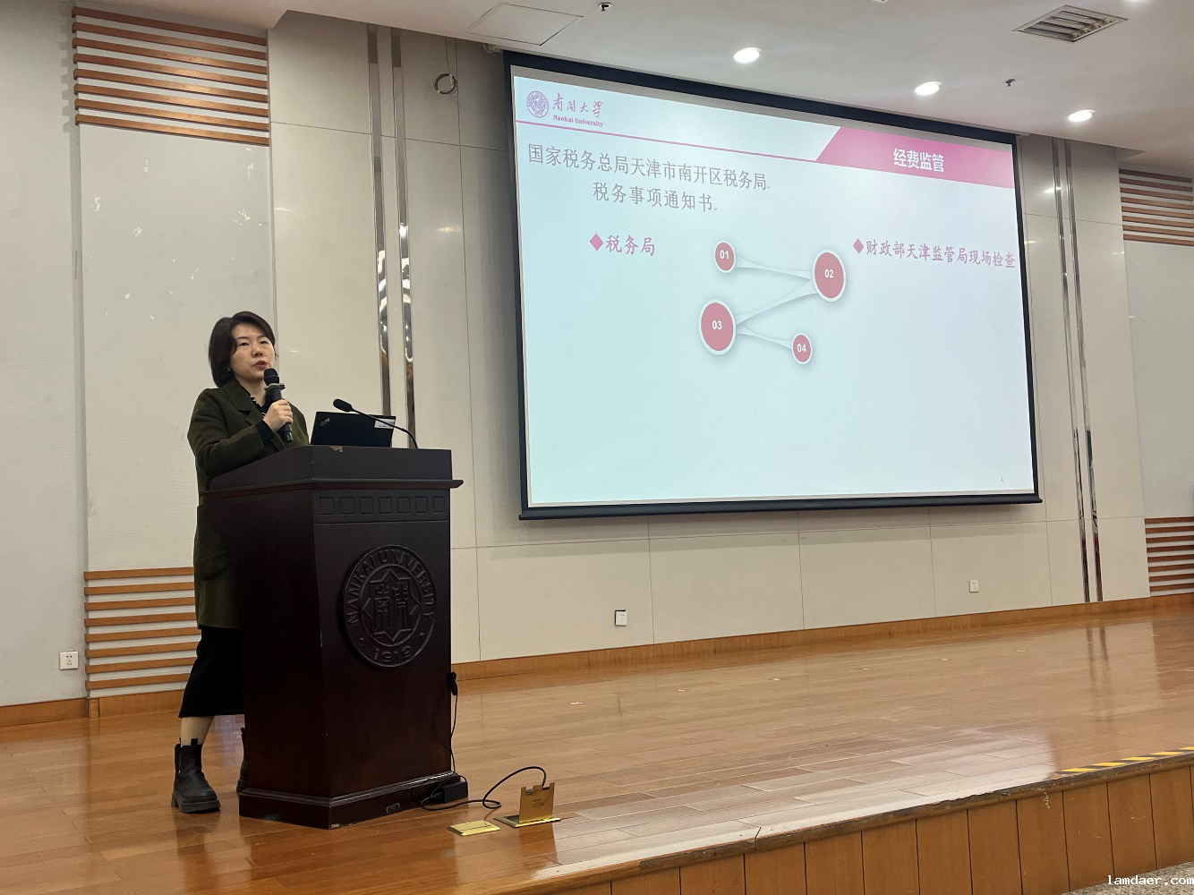 刘文婷老师就新形势下高校财务管理工作规范进行讲解,包括科研经费报销管理、加强会议费规范管理等,通过相关实例,为师生详细剖析经费监管、经费适用范围等内容;详细解读了新修订的《南开大学会议费管理办法》和财务报销注意事项。