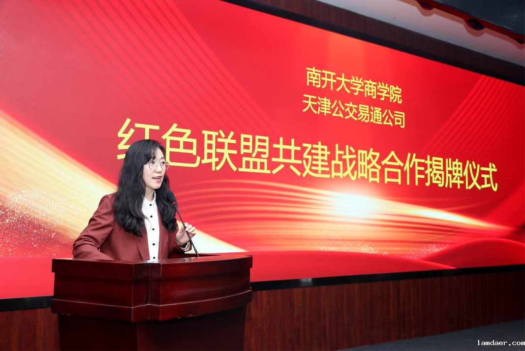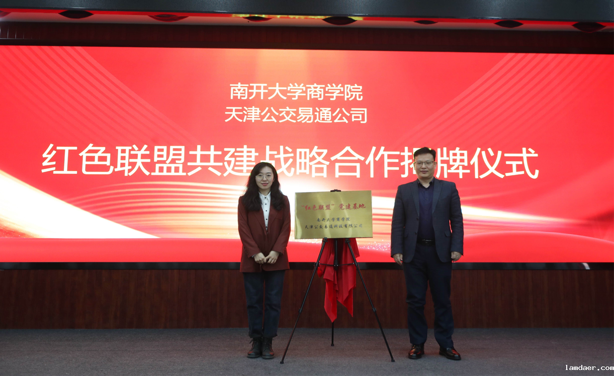 为进一步加强政府、企业和高校的沟通交流,深入推进党建品牌建设,推动“党建+”工作向纵深发展,不断促进政府、企业和高校凝聚党建共识,促进党建工作有机融合,南开大学与公交易通公司建立“红色联盟共建”战略合作。由南开大学商学院党委副书记、副院长周翠翠与公交集团党委副书记张继鹏先生共同开启红色联盟共建挂牌仪式。