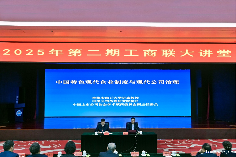(通讯员高铭阳)近日,南开大学讲席教授、中国公司治理研究院院长李维安受邀出席全国第二期工商联大讲堂,以“中国特色现代企业制度与现代公司治理”为题作辅导报告。本次“工商联大讲堂”由全国工商业联合会主办,全国工商联领导,机关各部门、直属单位主要负责同志,在京的全国工商联执委企业,直属商会会长及副会长企业代表,以及特邀民营企业代表、各省级分会场工商联负责同志和企业代表近千人出席了会议。