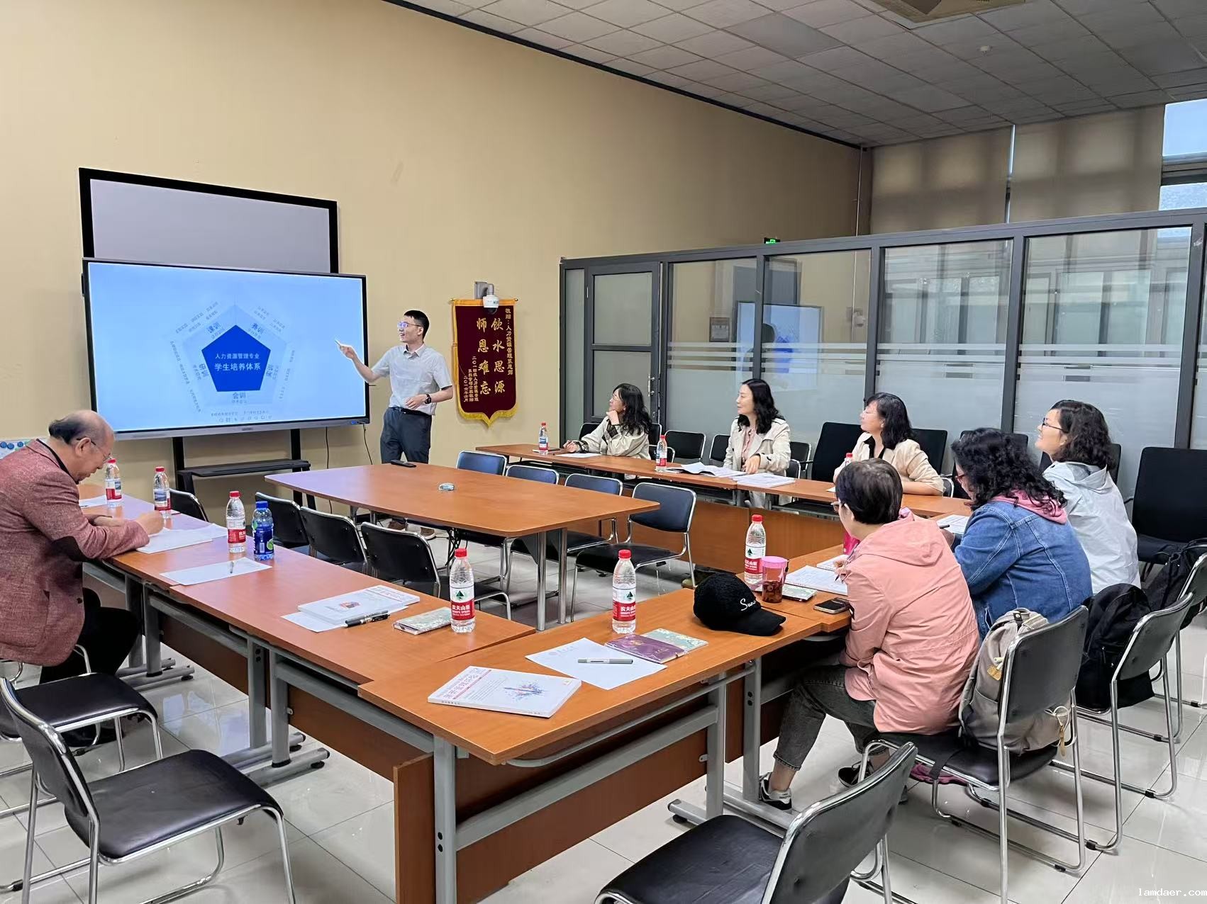 主管本科教学的系副主任李全老师重点介绍了人力资源管理系培养方案的修订思路,强调通过国际小学期、暑期课程等校院两级资源拓展学生国际视野,构建了"专业能力-创新研究-实践应用"三位一体的培养体系。目前,人力系已形成"研训、课训、赛训、实训、会训"五位一体的本科生培养新模式。